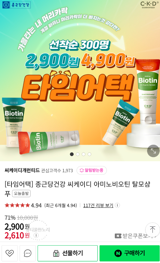 이런 상품 어때요? [타임어택] 종근당건강 씨케이디 아미노비오틴 탈모샴푸