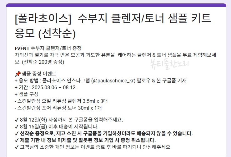 인스타그램 ✔️샘플 증정 이벤트
