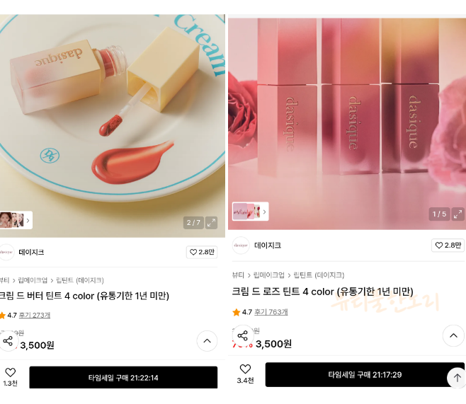 데이지크(DASIQUE) 크림 드 버터 틴트 4 color (유통기한 1년 미만) - 후기 | 무신사