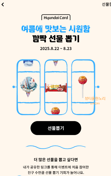 여름에 맛보는 시원함 깜짝 선물 뽑기