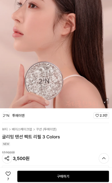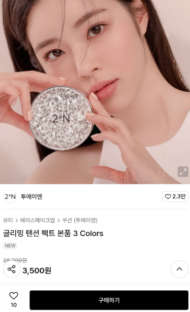 제품분류 :뷰티 > 베이스메이크업 브랜드 : 투에이엔(2AN) 제품번호 : 414634 제품 : 글리밍 텐션 팩트 본품 3 Colors - 3,500