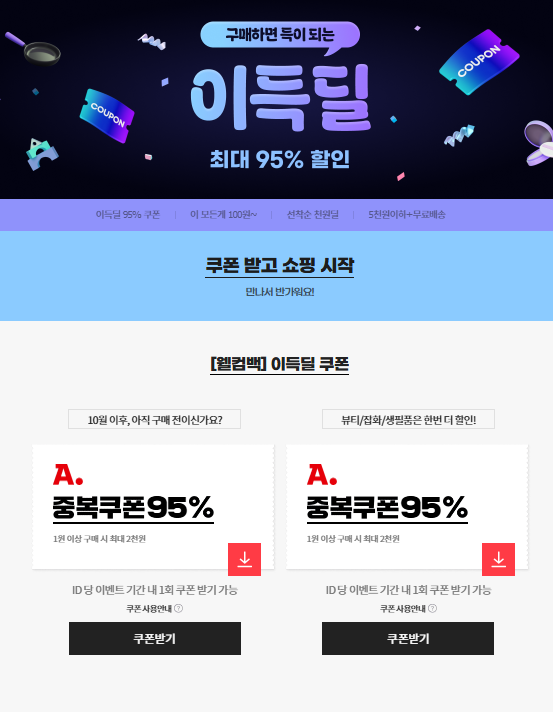 100원딜구매.. 95% 쿠폰받고..