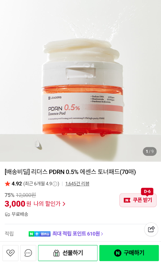 | [배딜⬇️] 더블유랩 광채시트 마스크 1박스 (5매) 2500원 (네멤만무배) - N실체감 1888원 (0) | 2025.10.27 |