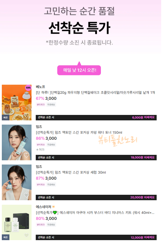 | [12시▼] 지그재그 선착순 배송비딜 3천원~ ⭕미스트등. 틴트등 (0) | 2025.11.12 |