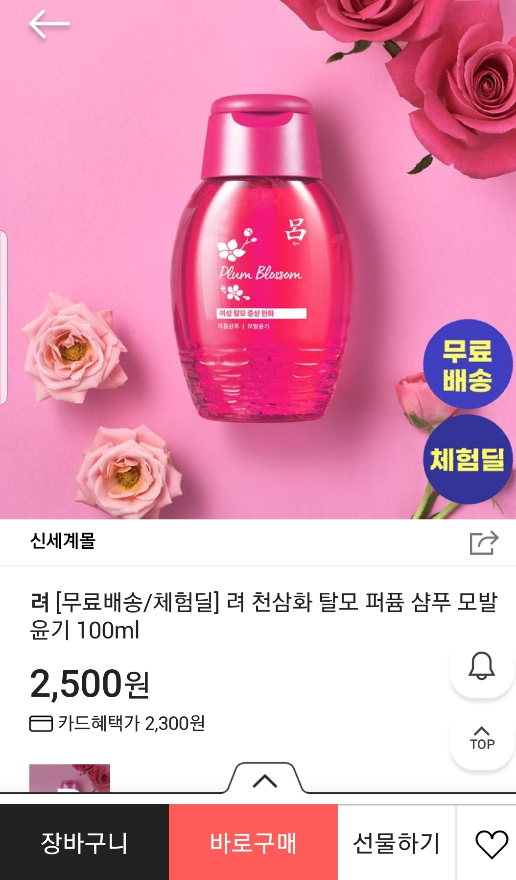 [신세계TV쇼핑] [무료배송/체험딜] 명품향수향! 려 천삼화 탈모 퍼퓸 샴푸 모발윤기 100ml