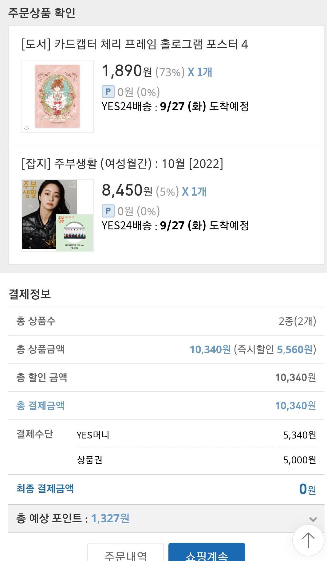 예스는 만원이상은 무배라서 ㅋ