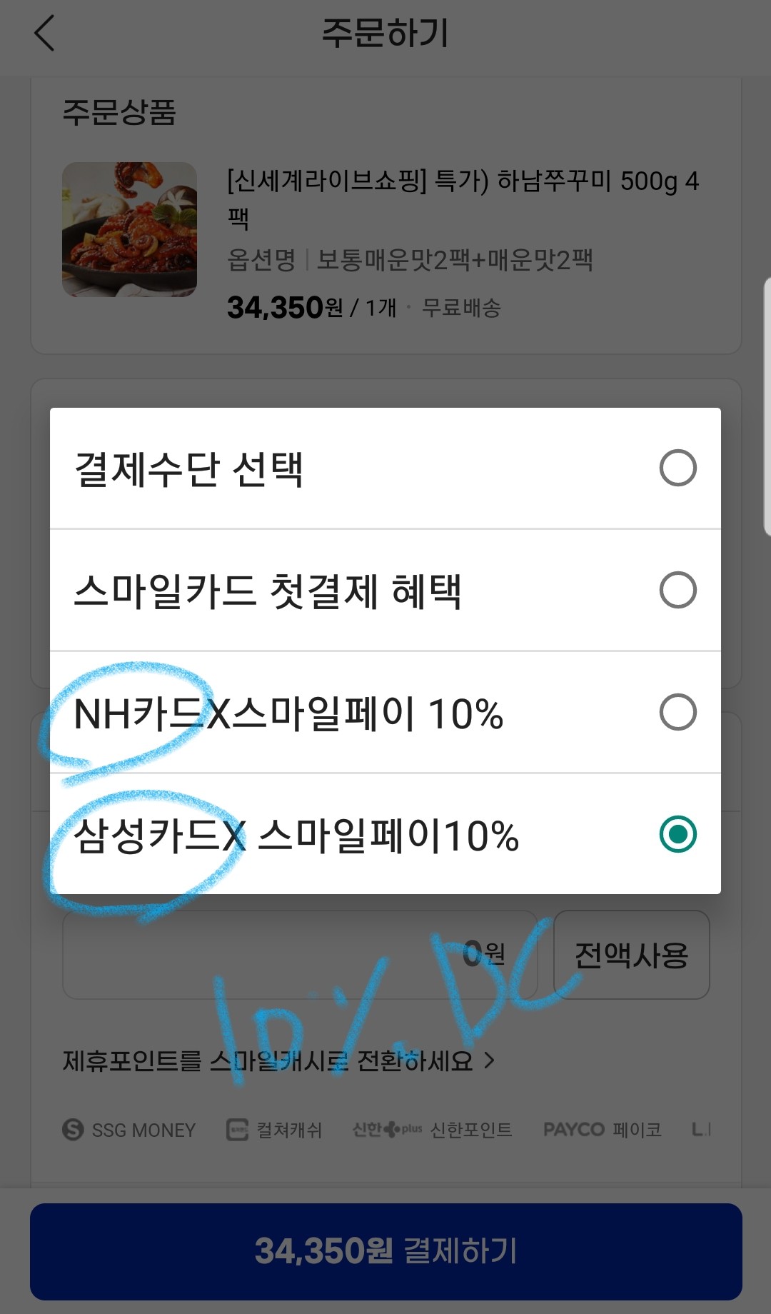 카드사혜택 받음 3430원할인됨